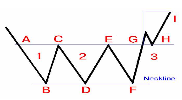 Technical Analysis – Trend Reversal Patterns_006 Figure 5.20. Diagram of a typical triple-bottom formation.